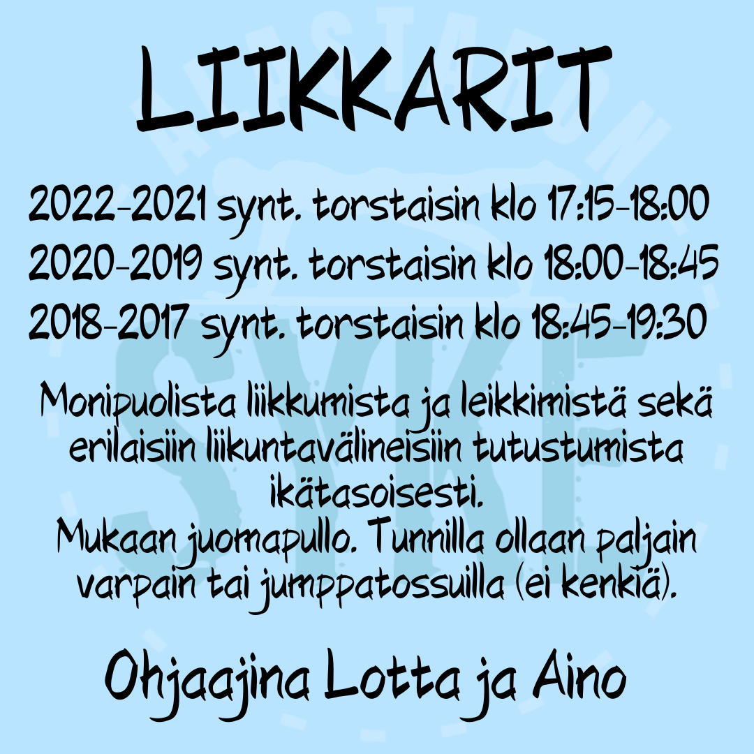 Kysymykset kursseista sähköpostilla alastaronsyke@gmail.com ja katso myös somestamme ajantasaiset tiedot.